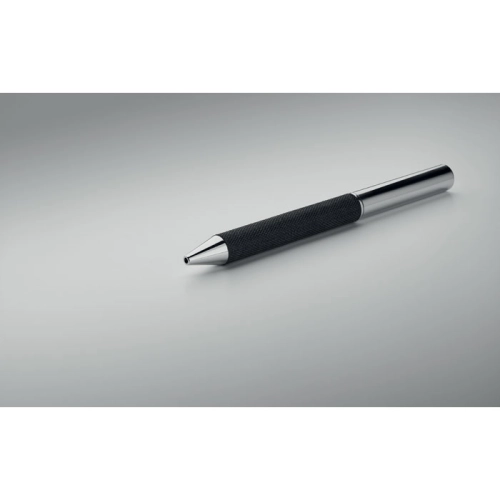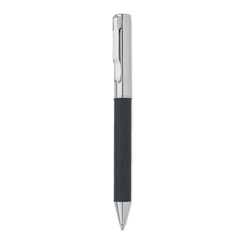 Metal twist ball pen with RPET polyester detail presented in gift box. Blue ink.